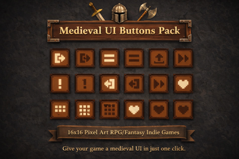 | Tags | 16x16, 2D, Buttons, Fantasy, Graphical User Interface (GUI), Medieval, No AI, Pixel Art, User Interface (UI) |
